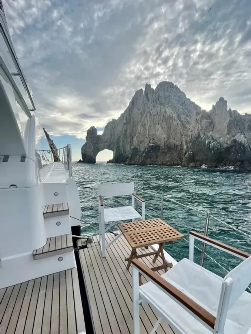 Among the most exclusive yachts in Cabo — sleek, sporty, luxurious.